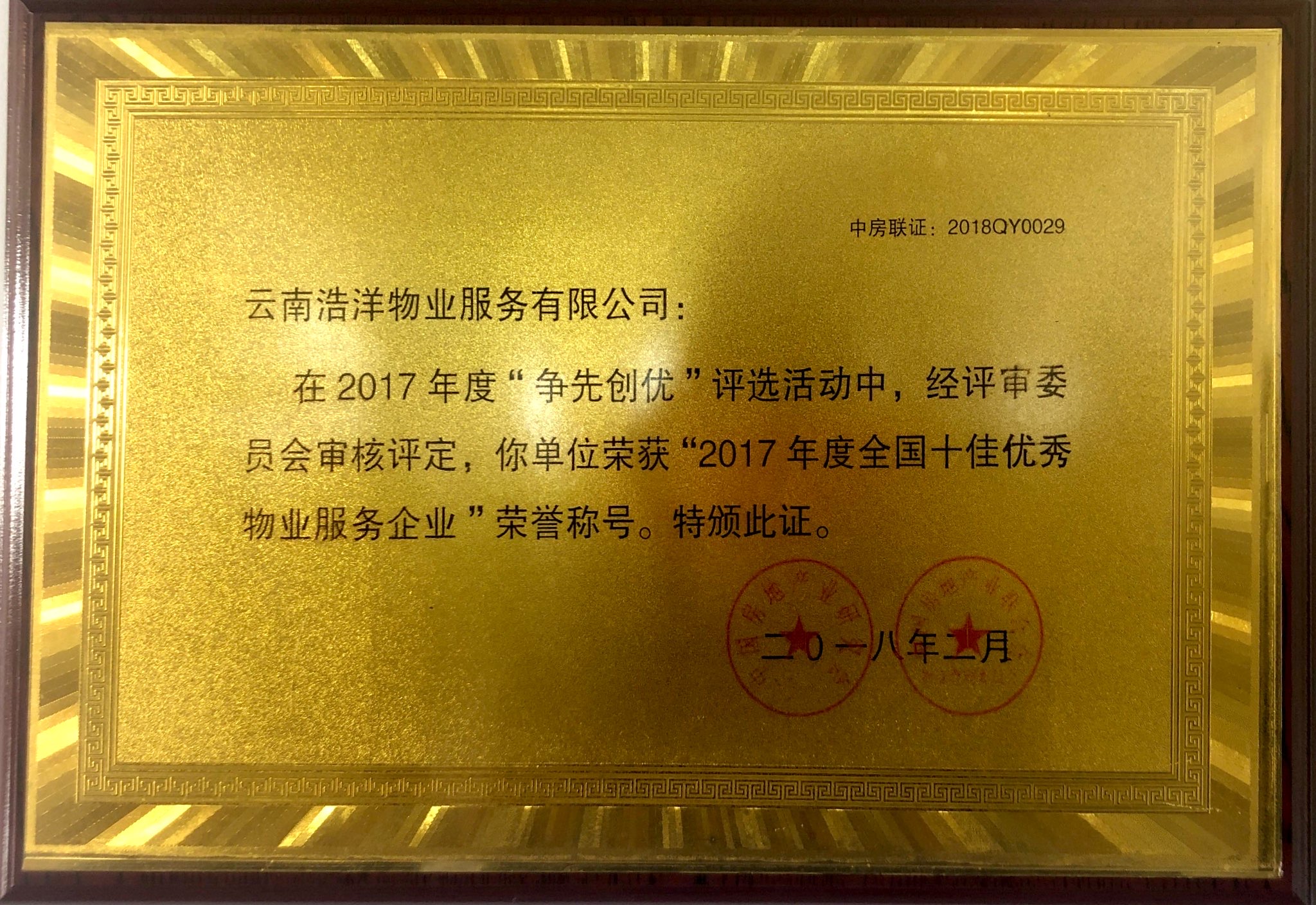 2017年度全國(guó)十佳優(yōu)秀物業(yè)服務(wù)企業(yè)