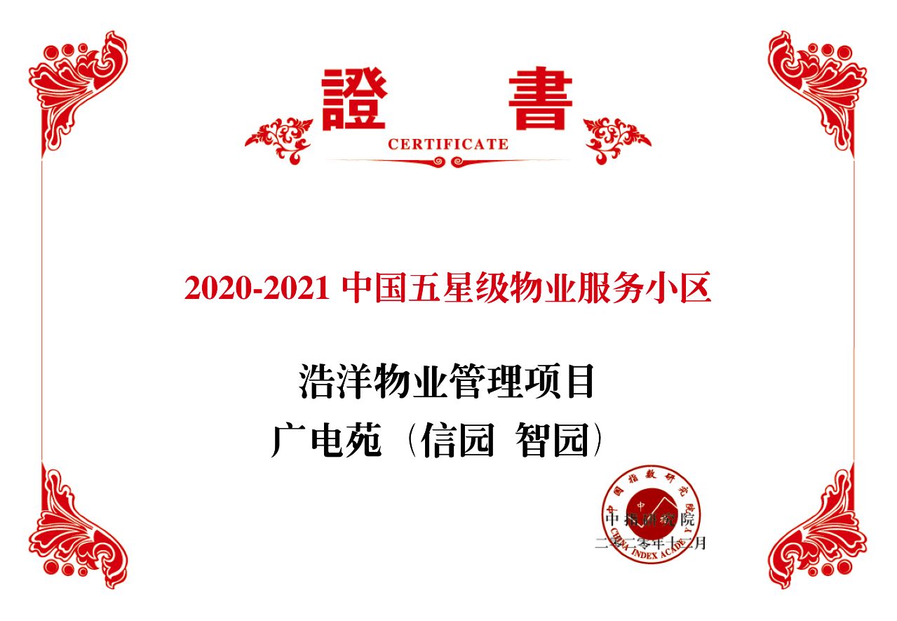 中國五星級物業(yè)服務(wù)小區(qū)證書