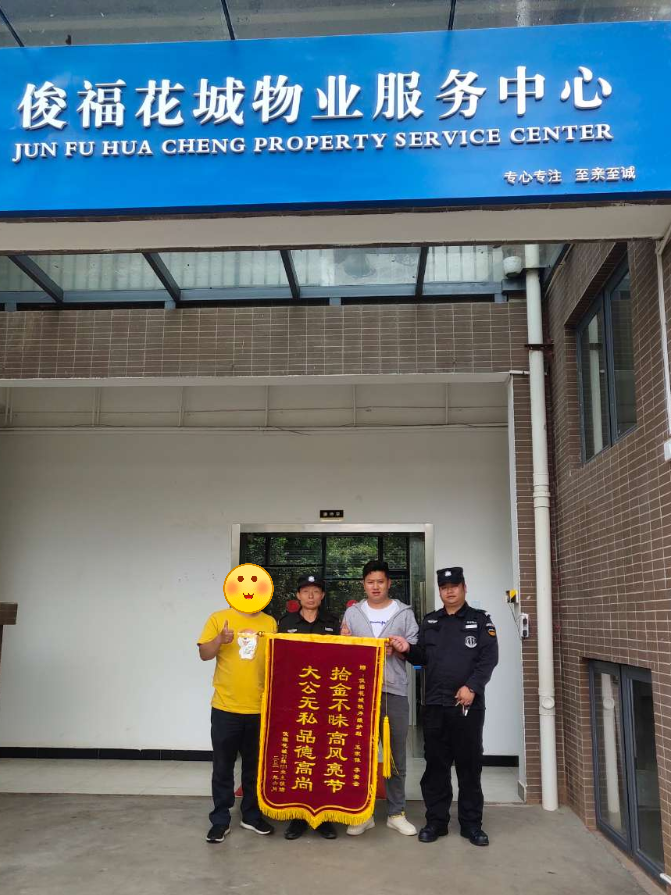 近日,我公司秩序員王家體在園區(qū)內(nèi)巡邏拾到手機(jī)一部,該員工撿到手機(jī)后主動(dòng)上報(bào)至班組主管。之后住戶(hù)至物業(yè)服務(wù)中心反映手機(jī)丟失,秩序主管極聯(lián)系班組員工,在確認(rèn)手機(jī)實(shí)為該住戶(hù)所有后將手機(jī)歸還住戶(hù)。住戶(hù)對(duì)李嵩云主管的工作效率給予很大的肯定,也對(duì)秩序員王家體同事拾金不昧的精神表示贊揚(yáng)。兩位員工的工作態(tài)度及效率得到住戶(hù)認(rèn)可,并為兩位同事送上錦旗。