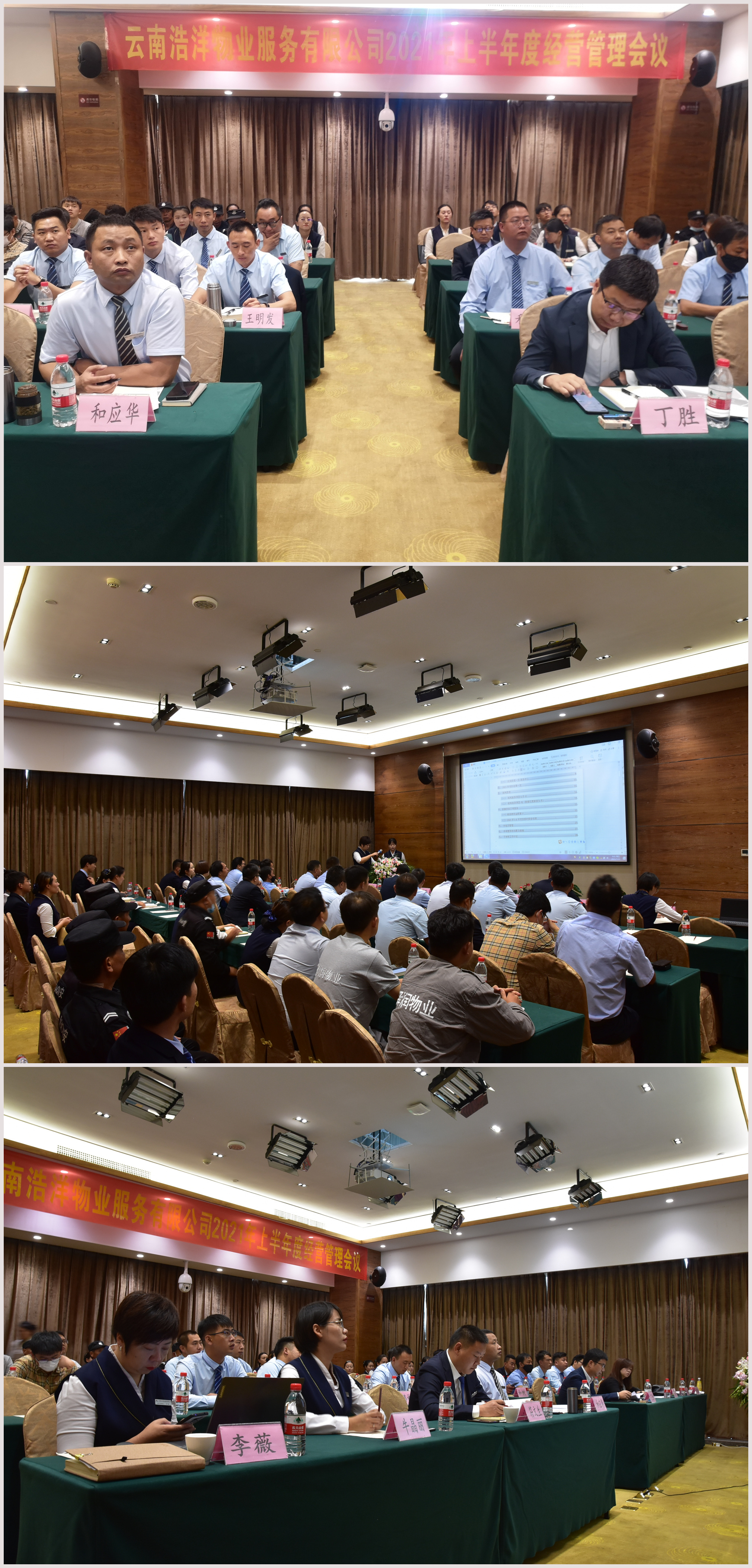 2021年7月23日,云南浩洋物業(yè)服務(wù)有限公司2021年上半年度經(jīng)營管理工作會議順利召開。出席會議的主要有:董事長丁勝先生,財務(wù)總監(jiān)莊瓔珞女士、常務(wù)副總經(jīng)理和應(yīng)華先生、業(yè)務(wù)副總經(jīng)理符文生先生、行政人力資源總監(jiān)李薇女士,以及各部門、項目部經(jīng)理、主管,優(yōu)秀員工代表。