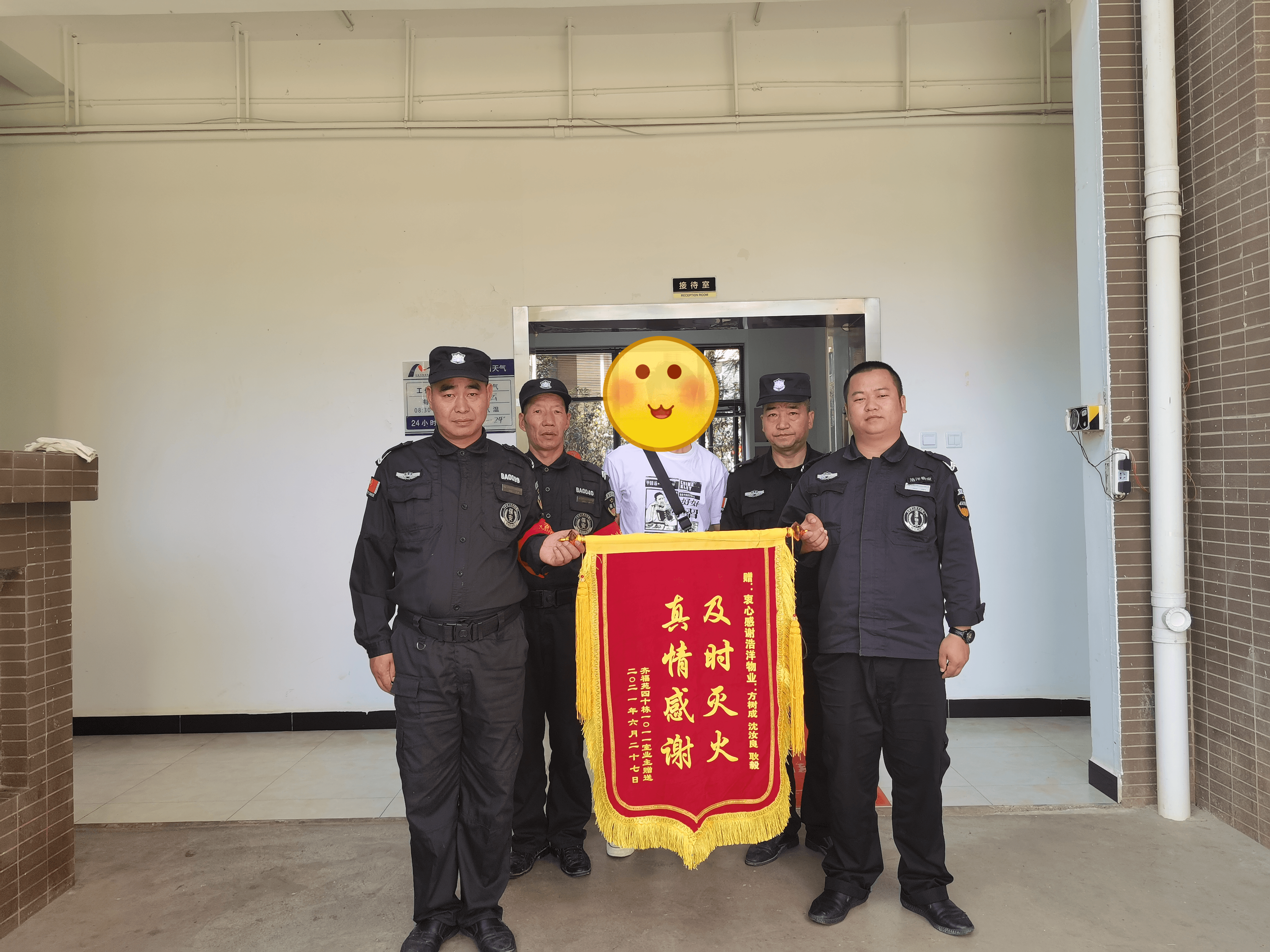 事后,住戶為表示對三位工作人員現場救火行為的感謝,特制作“及時滅火,真情感謝”的錦旗贈送至物業(yè)服務中心。