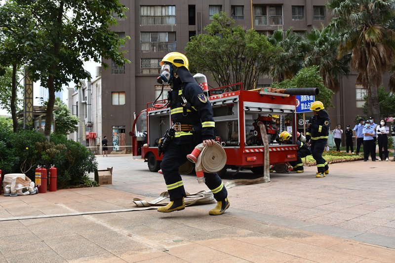 6月23至24日,公司分別在俊?;ǔ翘旄T?、溪畔麗景開展了火災(zāi)應(yīng)急演練。演練分為現(xiàn)場(chǎng)消防安全知識(shí)宣講和實(shí)戰(zhàn)演習(xí)兩部分。安全知識(shí)宣講部分由外請(qǐng)的應(yīng)急救援教官向參演人員宣講滅火器使用方法和消火栓箱使用方法。安全知識(shí)宣講后,現(xiàn)場(chǎng)開始實(shí)戰(zhàn)演練,突然間現(xiàn)場(chǎng)48棟1107室冒出濃煙,監(jiān)控室人員發(fā)現(xiàn)火情后迅速拉響消防警報(bào),并向服務(wù)中心應(yīng)急指揮小組報(bào)告,應(yīng)急指揮小組立即啟動(dòng)消防應(yīng)急預(yù)案,服務(wù)中心應(yīng)急救援小組員工攜帶干粉滅火器迅速抵達(dá)現(xiàn)場(chǎng)控制火情,只見火勢(shì)逐漸被壓制,但是一袋衣物倒掉增加火勢(shì)又反撲增大,這時(shí)社區(qū)消防隊(duì)趕到,4名消防員協(xié)助應(yīng)急救援小組迅速完成水帶、水槍對(duì)接口、甩水帶、打壓射水系列動(dòng)作,一股激流射向熊熊火焰,轉(zhuǎn)瞬大火被撲滅,火災(zāi)被順利消除,現(xiàn)場(chǎng)響起一片掌聲。