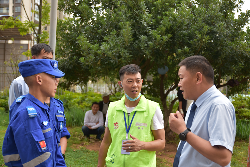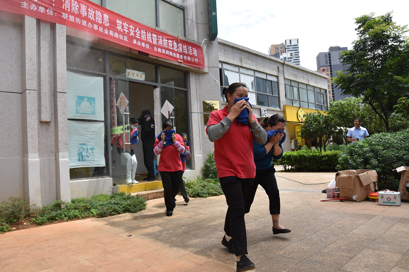6月23至24日,公司分別在俊?;ǔ翘旄T?、溪畔麗景開展了火災(zāi)應(yīng)急演練。演練分為現(xiàn)場(chǎng)消防安全知識(shí)宣講和實(shí)戰(zhàn)演習(xí)兩部分。安全知識(shí)宣講部分由外請(qǐng)的應(yīng)急救援教官向參演人員宣講滅火器使用方法和消火栓箱使用方法。安全知識(shí)宣講后,現(xiàn)場(chǎng)開始實(shí)戰(zhàn)演練,突然間現(xiàn)場(chǎng)48棟1107室冒出濃煙,監(jiān)控室人員發(fā)現(xiàn)火情后迅速拉響消防警報(bào),并向服務(wù)中心應(yīng)急指揮小組報(bào)告,應(yīng)急指揮小組立即啟動(dòng)消防應(yīng)急預(yù)案,服務(wù)中心應(yīng)急救援小組員工攜帶干粉滅火器迅速抵達(dá)現(xiàn)場(chǎng)控制火情,只見火勢(shì)逐漸被壓制,但是一袋衣物倒掉增加火勢(shì)又反撲增大,這時(shí)社區(qū)消防隊(duì)趕到,4名消防員協(xié)助應(yīng)急救援小組迅速完成水帶、水槍對(duì)接口、甩水帶、打壓射水系列動(dòng)作,一股激流射向熊熊火焰,轉(zhuǎn)瞬大火被撲滅,火災(zāi)被順利消除,現(xiàn)場(chǎng)響起一片掌聲。